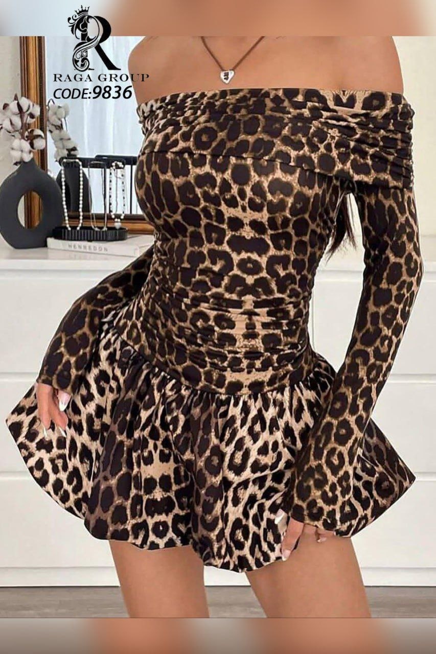 تونیک مجلسی گتدار پلنگی طرح رومی فری سایز ۳۶ تا ۴۲