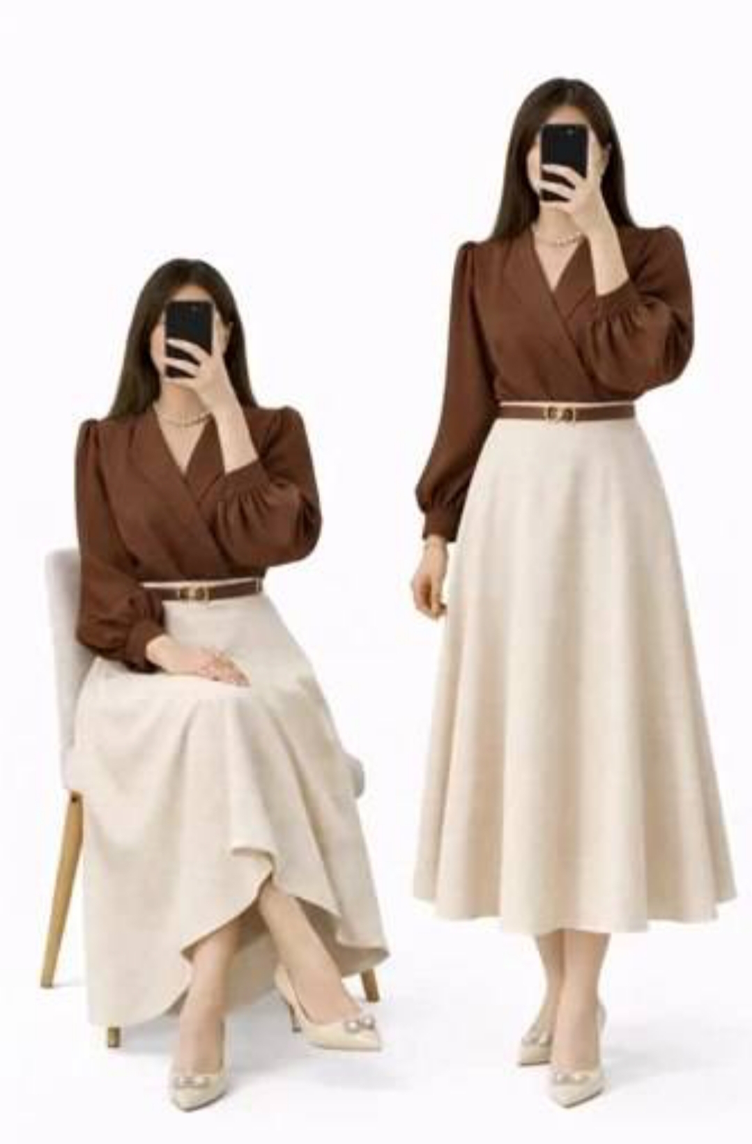 ست ۴ تیکه شومیز، دامن،وست و کمربند نیکا فری سایز طبق توضیحات در رنگبندی جذاب